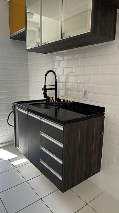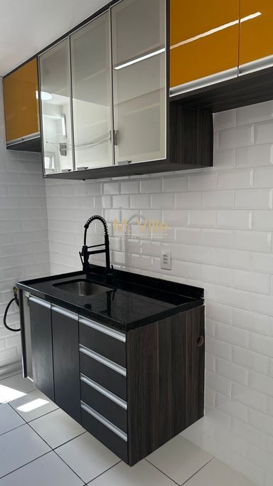 São 57 m², 02 dormitórios, sendo 01 suíte, WC social, sala para 02 ambientes, cozinha americana com armários planejados, área de serviço e 01 vaga de garagem .